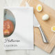 This easily customized tea towel features artwork in soft pastel hues depicting a carved Halloween pumpkin with a fun, cross-eyed Jack o’ lantern face.