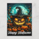 Happy Halloween Sinister Illuminating Mad Pumpkin Postcard