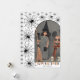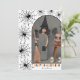 Send spooky, yet special, Halloween greetings to your friends and family with this festive card! Showcasing black spiders on their webs on the left and upper part of the card, it frames an arch with your own photo and the text "Happy Halloween" in a black and orange font. To complete the perfect spooky touch, the back of the card features a pattern of spiderwebs.