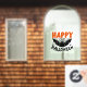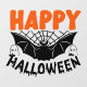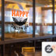 This fun Halloween window cling features text image "Happy Halloween" with spooky bat, spider web, and cemetery tombstones. Colors are editable. Perfect for the holiday season.