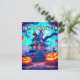This creative Happy Halloween postcard features an illustration of a creepy dark mansion after midnight, guarded by various illuminating pumpkins. Please feel free to adjust all the available options as you wish.
