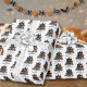 Give your Halloween wrapping a playful and festive touch with this fun design! This wrapping paper features a simple black and white pattern of a haunted house, with pops of orange from spooky trees, pumpkins, and jack-o-lanterns. The design is sprinkled with cute ghosts and bats, and a mix of simple and script typography repeating 'Happy Halloween.' It's perfect for wrapping up gifts for a Halloween party or adding a spooky, whimsical vibe to any celebration. Ideal for anyone who loves to celebrate the spooky season in style! Happy Halloween Spooky Pattern Wrapping Paper Cute Haunted House Pattern Black White Orange