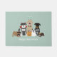 Cute illustration of dogs and a cat wearing Halloween costumes.