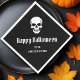 Halloween napkins featuring a skull and the text: "Happy Halloween" in a gothic style font with your name or other custom text below on a black or custom color background.