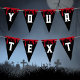 Another spooky customizable string of bunting by JessicaAmber - ask about custom orders! These flags are perfect decorations for your Halloween or birthday party. Features a pattern of red dripping blood on a black background. Sharp white serif text says 'Happy Halloween!' You can change the colours and the text to suit your needs. 🩸 Created 4 Feb 2023. For more horrifying decor, visit my Zazzle store https://www.zazzle.com/store/jessicaamberartist 🩸 For special orders, email me at jessicaamberartist+custom@gmail.com