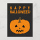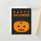 Happy Halloween Text and Pumpkin on Black Postcard
