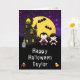 This fun and spooky Halloween card can be personalized with a name or title, such as daughter, granddaughter, niece, friend etc. It features cute vampires beside a crooked haunted house. In the background is a full moon with bats and a purple night sky with stars. The text combines decorative and serif fonts for a stylish and modern look. This is perfect for Halloween.