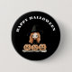 Happy Halloween Scary witch Button. It is Orange and black Happy Halloween with a screeching black cat can be customized to add names, text, or sayings. Click "customize it" to add yours. It is great for fun Halloween gifts and treats!