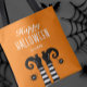 Cute illustration of a witches legs and funny feet with Happy Halloween and space below for customizable text. Perfect for trick or treating!