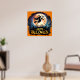 A Cute scary Fall - Halloween design with a Witch flying on her broom and some bats in the moonlight.