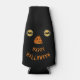 Bottle Cooler Koozie Sleeve printed with Happy Halloween Witchy Eyes And Pumpkin Nose with Gatekeeper style lettering wording phrase greeting artwork design illustration by TheFabricSeal at Zazzle.com #Zazzle Made https://www.zazzle.com/store/thefabricseal.