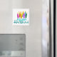 Colorful Hanukah candles on this Happy Hanukah magnet.