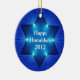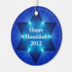 A bright, unique, and beautiful Hanukkah ornament with the Star of David and illuminated lights on a blue background with "Happy Hanukkah 2012" text on one side in white letters. Easily change the text or delete it if not needed. Room on the back to personalize if desired. The perfect Hanukkah keepsake memento for 2012!