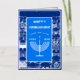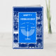 Happy Hanukkah Beautiful Jewish Holiday Greeting Card / Invitation. Jewish Holiday Hanukkah Vintage Jerusalem gold frame, navy blue background with traditional Chanukah symbols - Gold Menorah, Hanukkiah Candelabrum and Candles, wooden dreidels (spinning top), donuts, star of David and glowing lights wallpaper pattern. Hanukkah Festival Decoration. Jerusalem, Israel. Invitations & Stationery, Greeting Cards, Postcards, beautiful card with two sides graphic decoration. Card Design with custom text template. Vintage design. Personalize them by adding or change invitation text.