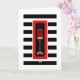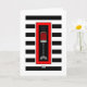 This unique red, black and white hanukkiah on bold black and white stripes declares Happy Hanukkah blessings! Interior card bordered and coordinated with also a colorful spinning dreidel for your writing pleasure. ~ karyn
