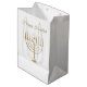 Happy Hanukkah Faux Gold Menorah White Holiday Medium Gift Bag