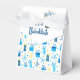 An Adorable Happy Hanukkah Party Favor Gift Box For Celebrations Design In A Colorful Blue and Yellow Gift Pattern And A Lite Menorah
