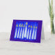 The blue background and the bright, flaming candles create a wam greeting for Hanukkah greetings. The heavy card stock allows this card to stand alone so that it can be displayed.