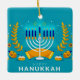 Happy Hanukkah Menorah and Dreidels Ceramic Ornament