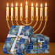 Happy Hanukkah Photo Collage Personalized Blue Wrapping Paper