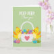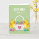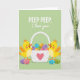 This design shows a pastel green background framing a white woven basket filled with patterned eggs in blues, purples, greens, oranges, and pinks, with stripes, waves, and dotted details. A pink heart sits on the front of the basket, giving the scene a gentle, affectionate focus. Two small cartoon yellow hatchlings stand on either side, leaning in as if sharing a sweet moment of friendship, their wide eyes turned toward the basket and each other. Their orange beaks are slightly open like they’re chirping, and their tiny orange crests and rosy cheeks add a soft, caring touch. A few extra decorated eggs rest near their feet across the lower area, spreading the color outward like a springtime trail 🌷. Near the top, “PEEP PEEP” appears in large white letters, with “I love you” placed beneath it in smaller white lettering. The lighting is even and soft, keeping the basket’s weave texture and the eggs’ patterns easy to see 🐣. The upper text sits centered above the basket, while the pink heart detail is centered on the basket’s front panel.