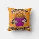 A funny Happy Haul-o-ween trick or treating haul pumpkin jack-o-lantern candy shopping fun Halloween autumnal fall harvest time spoof humor design goofy harvest décor slogan cartoon fun design deluxe unique home décor throw pillow cushion. Get an epic Halloween fun cartoon slogan pillow today.