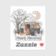 Celebrate spooky nights with Happy Haunting sticker! This fun Halloween sticker features a haunted graveyard scene with a witch and camper van—perfect for Halloween lovers and camping enthusiasts.