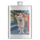The product is a good size and came exactly as it was pictured. The lid is not attached to the flask, which could be dangerous on drunken nights... The print came out surprisingly well and looks very sharp. Would definitely recommend.