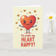 This card shows a glossy red heart character right in the middle, standing on a light, creamy background. The heart has big, shiny eyes with bright highlights, rosy cheeks, and a wide smile that feels welcoming. Its thin arms stretch outward as if it’s ready for a hug, and its simple little legs give it a friendly, cute look. Around it, smaller golden-brown hearts are scattered across the background, adding a gentle sense of love all around. Near the bottom, the text reads “You make my HEART HAPPY!” with “You make my” in a thin, flowing letter style and “HEART HAPPY!” in thicker, stronger letters. The lettering is dark and easy to read, and it sits neatly below the main heart so the message lands right after you notice the smile. It feels meaningful because it’s simple, sweet, and says exactly what you want someone to know 🥰❤️.