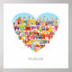 A happy colorful heart-shaped village full of joy, friendship and lots of love! Square format poster in a variety of size and paper options. A simple and cheerful design perfectly suited for any little boys' or girls' room. Expert framing options also available. Makes a lovely baby shower or birthday gift ... sweet.