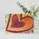 A small purple heart is enclosed by a red heart that is within orange hearts. The hearts are outlined in green, purple, and red. The watercolor background is a soft yellow with colorful confetti dots. A light layer of gold and red glitter traces the heart edges. Laugh hearts are a detail from Inspirational Word "Laugh" painting. Personalize this invitation with your own text and images using the Custom It option to make your own special invites! Proceeds from the sale of this invitation support DonnaBellas Angels, a 501(c)3 non-profit.