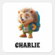 Cute, happy hedgehog goes to school with a schoolbag on his back (customize/personalize text)