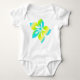 This playful hibiscus adorns the front and back of this infant creeper. There is a larger hibiscus flower with a colorful blend on the front & a smaller solid color coordinated one on the back. These designs come in several colorways.