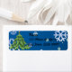 Personalize with name and address. Snowflakes on a blue background with a Christmas tree.