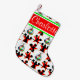 Perfect! Exactly what I ordered! I uploaded a picture of my blue chow, and the screen print was incredible. the back side of the stocking was the red and black checkered print. my puppy's name was also printed on the cuff of the stocking. PERFECT! Highly recommend this product! My puppy's name was screen printed onto the cuff of the stocking, the font was perfect!