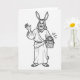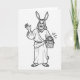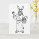 This design shows a black-and-white line drawing of a kind, smiling bearded man with long hair standing front and center against a plain white background. He wears a simple floor-length robe and sandals, and his gentle posture gives him a friendly, approachable air. Tall bunny ears sit on his head and a fluffy tail peeks from behind his left leg, adding a light Easter touch 🐰. A neat bow tie at his neck lends a slightly dressed-up look, like he’s ready to greet someone he cares about. In his right hand, he carries a woven basket filled with patterned eggs, drawn with small radiating lines to make them look special and noticed. His left hand is lifted in an open-palmed wave, like a warm hello to a close friend passing by 🌷. There is no text anywhere, just crisp black linework on white, with the basket held low at his side and the tail tucked behind his leg.