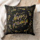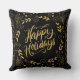 Happy Holiday Modern Typography Gold Leafs Frame Throw Pillow