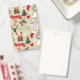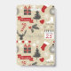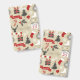 Seamless Happy Holidays design Christmas symbols - snowflakes, deer, calendar, Christmas tree, Christmas gift, skate, hearts, Christmas ornament, Christmas stocking, ribbon - decoration on grey background