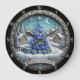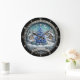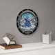 Happy Holidays Blue Christmas Tree Village Large Clock
