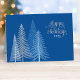 Wish your employees, clients and corporate contacts "Happy Holidays" this winter season with this stylish holiday card. This seasonal design includes modern pine trees and a patterned night sky with text in a decorative script. Design colors include shades of blue and navy with white, silver, and gray colors.