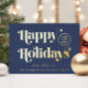 Happy Holidays Business Logo Blue Christmas Foil Holiday Card