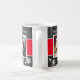 A festive chalkboard-style Christmas photo mug featuring "Happy Holidays" in white script across a charcoal chalkboard banner, with multiple custom photos separated by bold red accent panels and framed by a whimsical snowflake and star border along the bottom. The design includes a personalized family name and year for a custom holiday greeting. All text and photos are fully customizable — showcase kids, pets, or the whole family for a keepsake holiday gift that grandparents, friends, and loved ones will treasure.