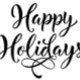 Calligraphic text that reads "Happy Holidays" in a flowing, elegant script, black ink on a white background.