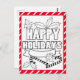 "Happy Holidays" big letter typography for coloring page with large ribbon, holly, and candy canes. Can be mailed or hung as wall art on fridge. Great entertainment activity for children as party favors, teachers for student activity, or sending to the grandparents from child. This card has a red white diagonal striped border.