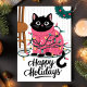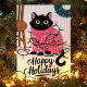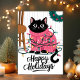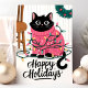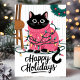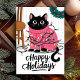 Happy Holidays Cute Cat Wrapped In Lights Holiday Card