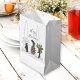 This design features three penguins among various symbols of the winter season: a snowflake, pine cone, and holly. The humorous animal illustration with personalized text makes a cute funny and unique gift bag.
