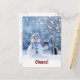 A cute and funny Happy Holidays postcard with a snowman holding a glass of wine and Cheers on the front. You can change the text, text. A fun wine country Christmas postcard.