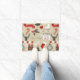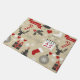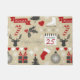 Seamless Happy Holidays design Christmas symbols - snowflakes, deer, calendar, Christmas tree, Christmas gift, skate, hearts, Christmas ornament, Christmas stocking, ribbon - decoration on grey background