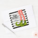 Elf legs in striped tights and green boots on black and white stripes and gold features Happy Holidays and your name these Christmas square stickers. MATCHING items in our store.