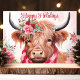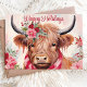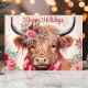 Happy Holidays Floral Highland Cow Christmas Holiday Card